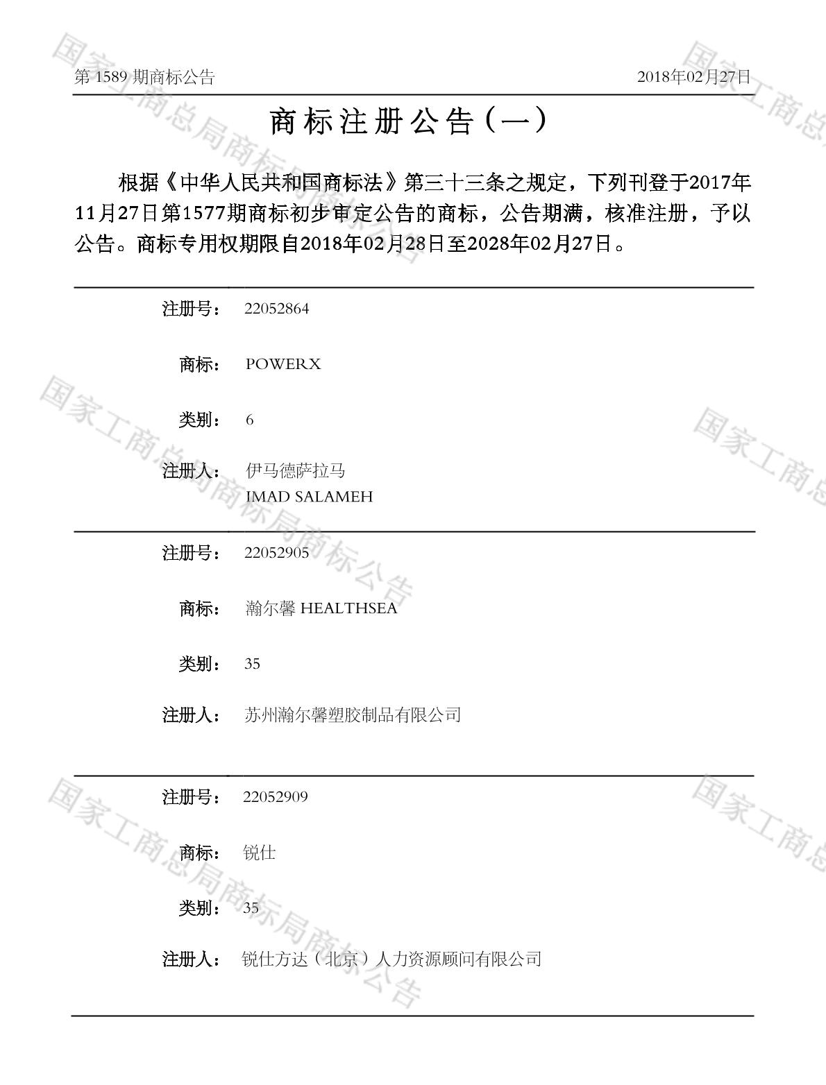 注册公告期号:1589