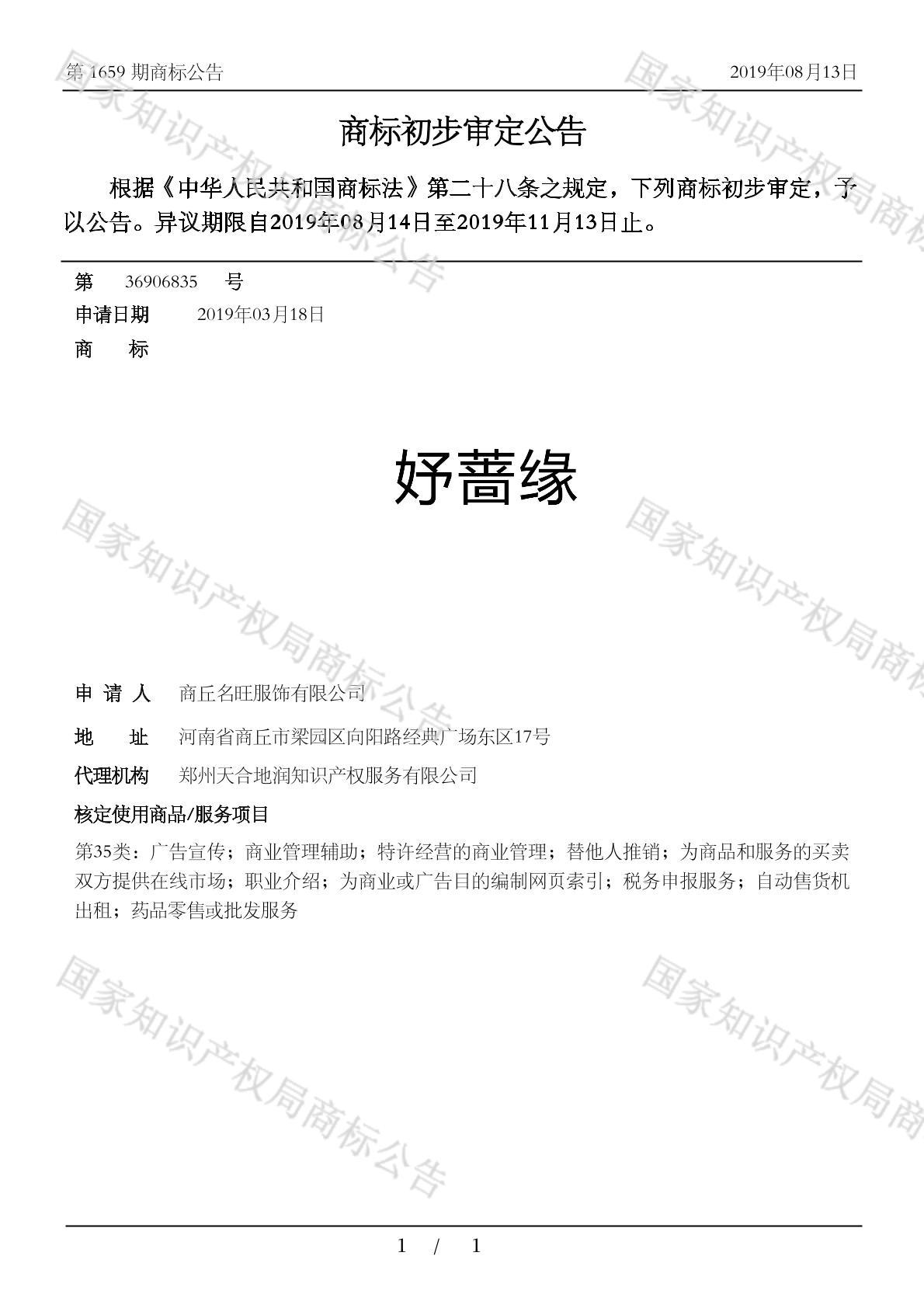 有效期限:2029-11-13 组合类型:中文注册号:36906835