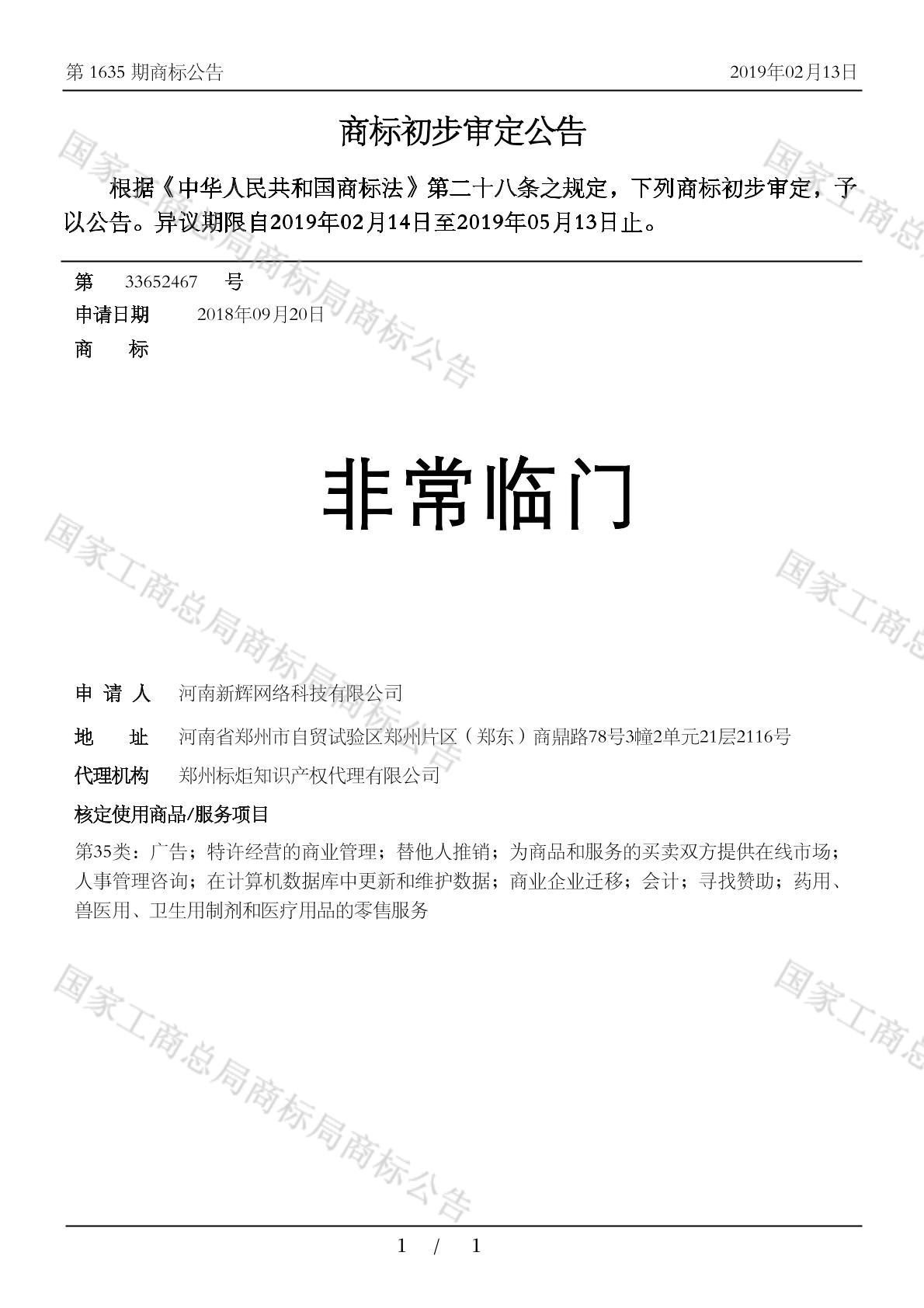 有效期限:2029-05-13 组合类型:中文注册号:33652467