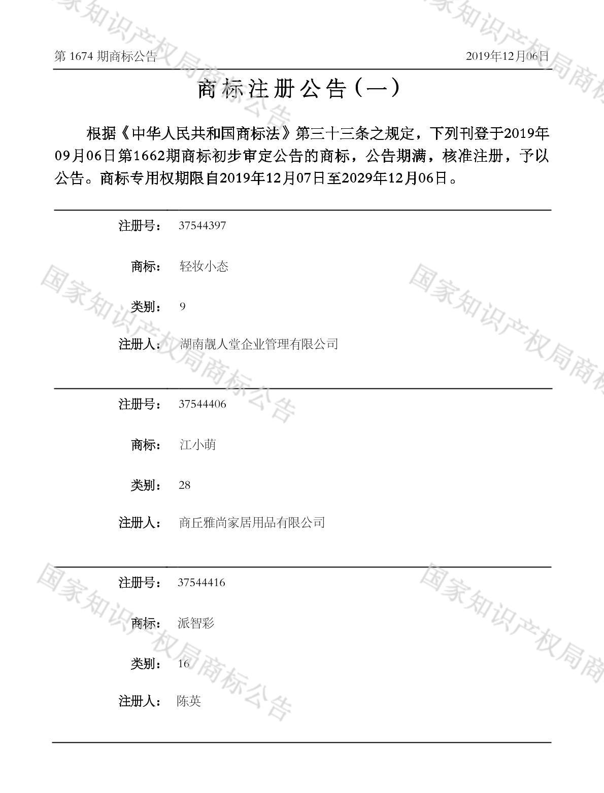 注册公告期号:1674