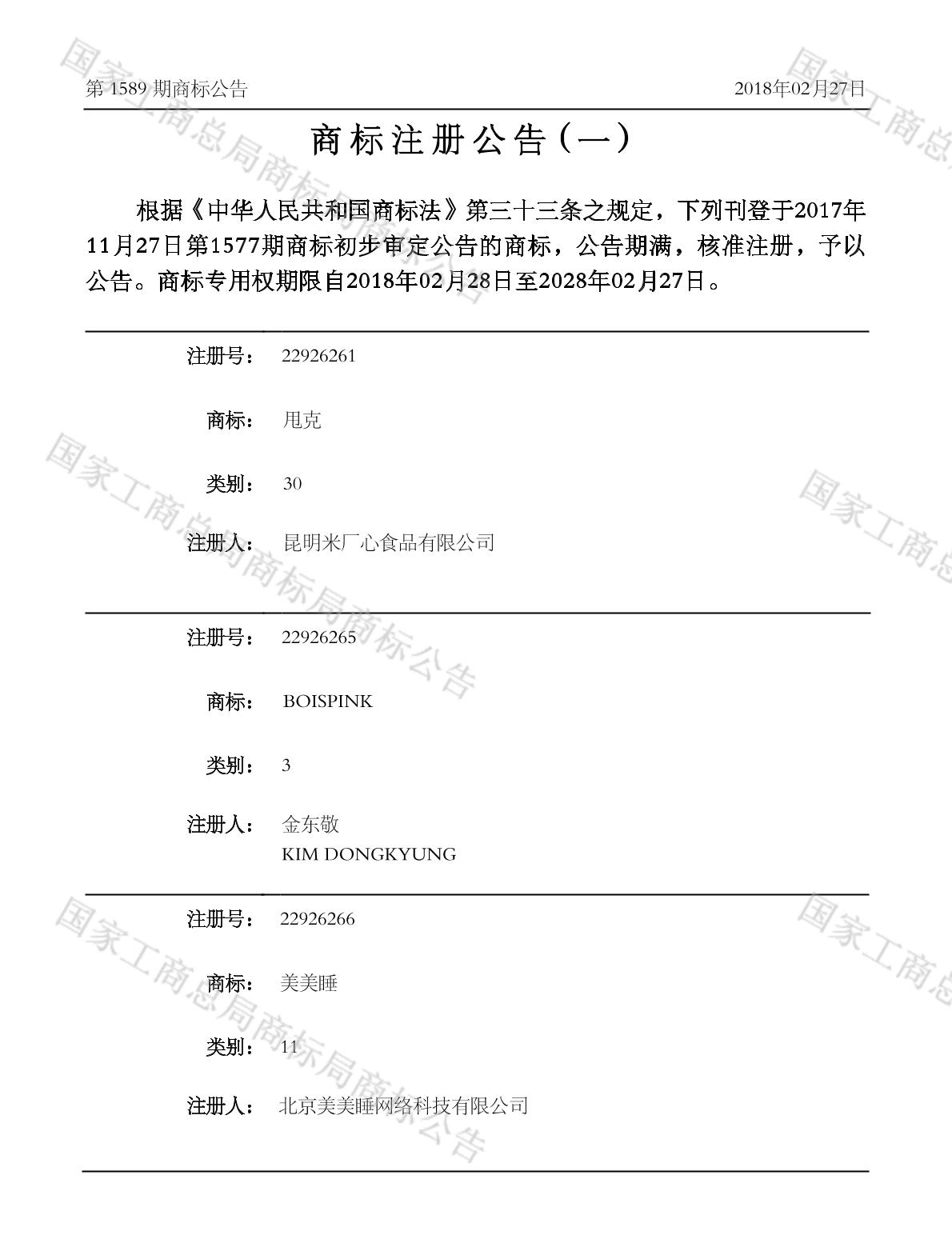 有效期限:2028-02-27 组合类型:中文注册号:22902628