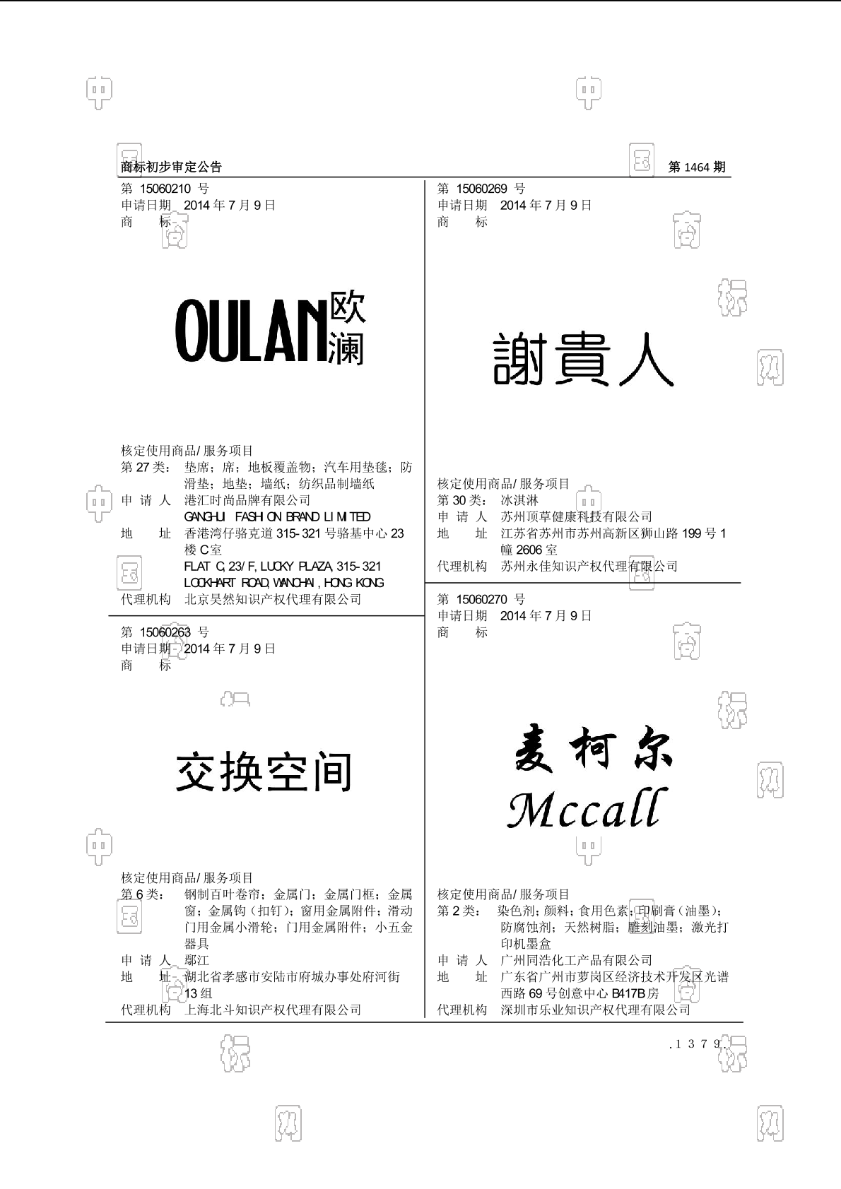 初审公告期号:1464