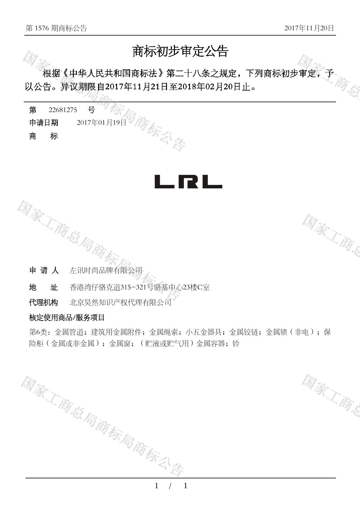 您当前位置:首页商标转让6类商标LRL