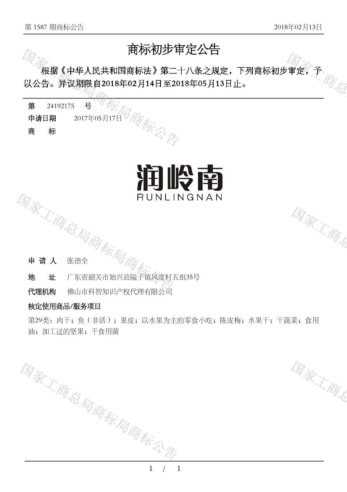 初审公告期号:1587