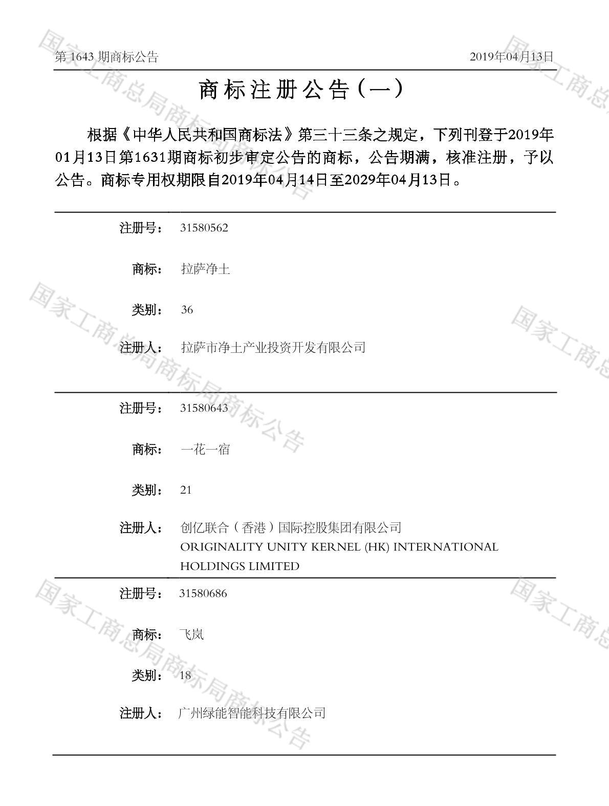 注册公告期号:1643