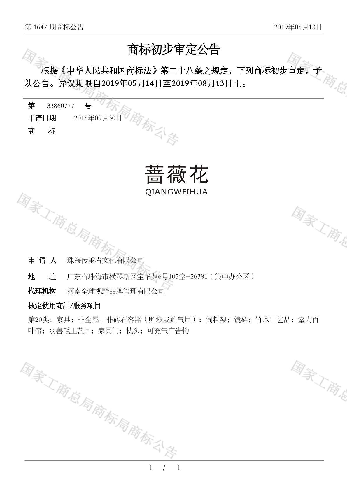 有效期限:2029-08-13 组合类型:中文注册号:33860777