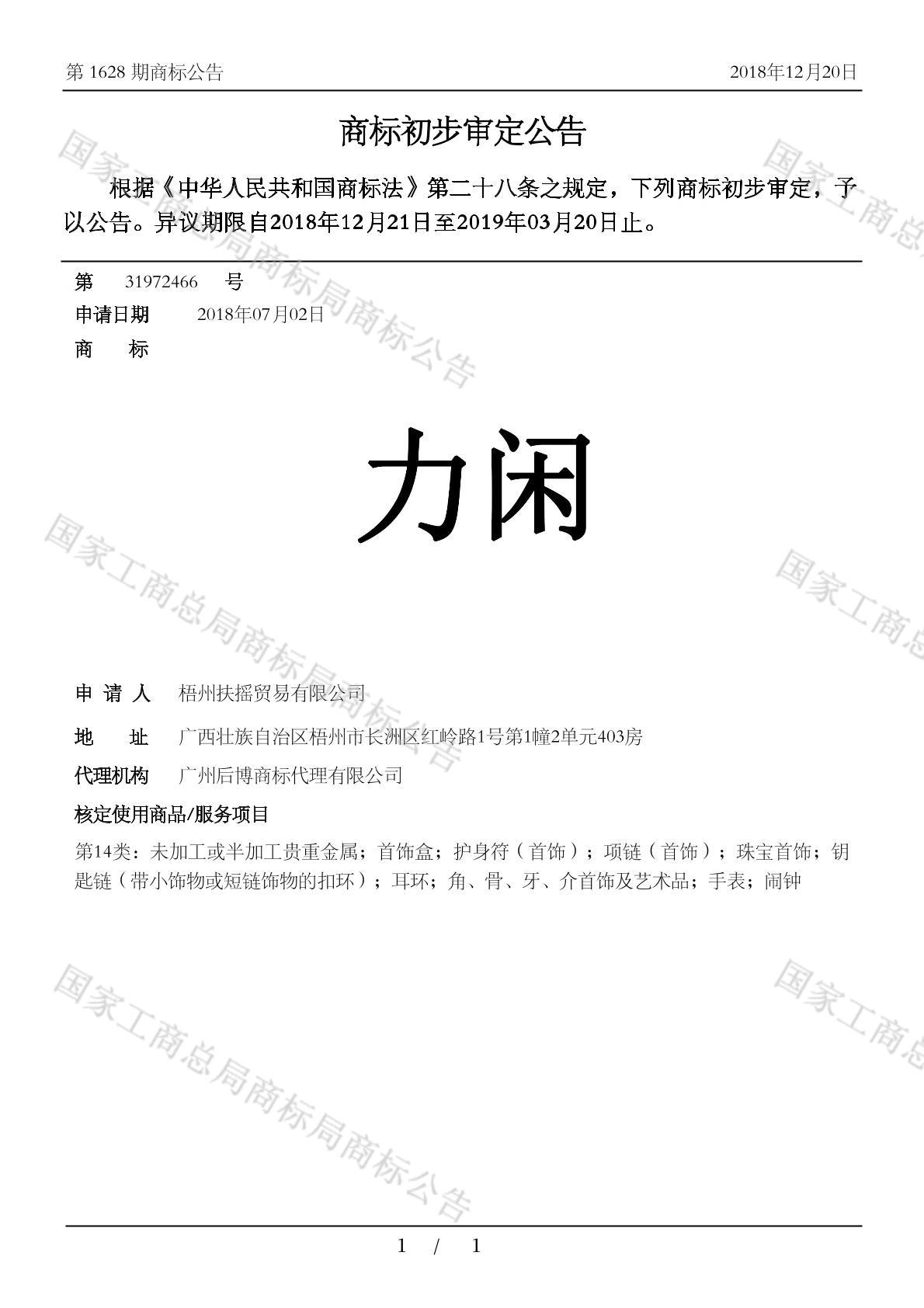 您当前位置:首页商标转让14类商标力闲