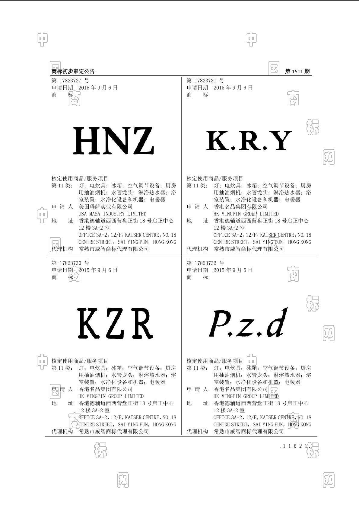 初审公告期号:1511