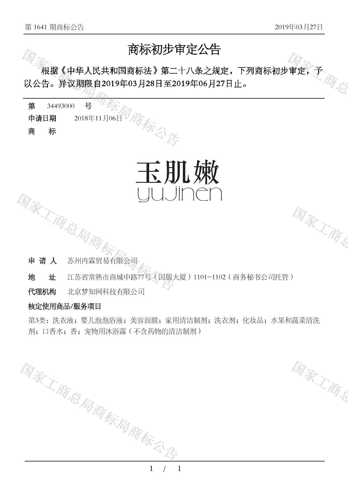 有效期限:2029-06-27 组合类型:中文注册号:34493000