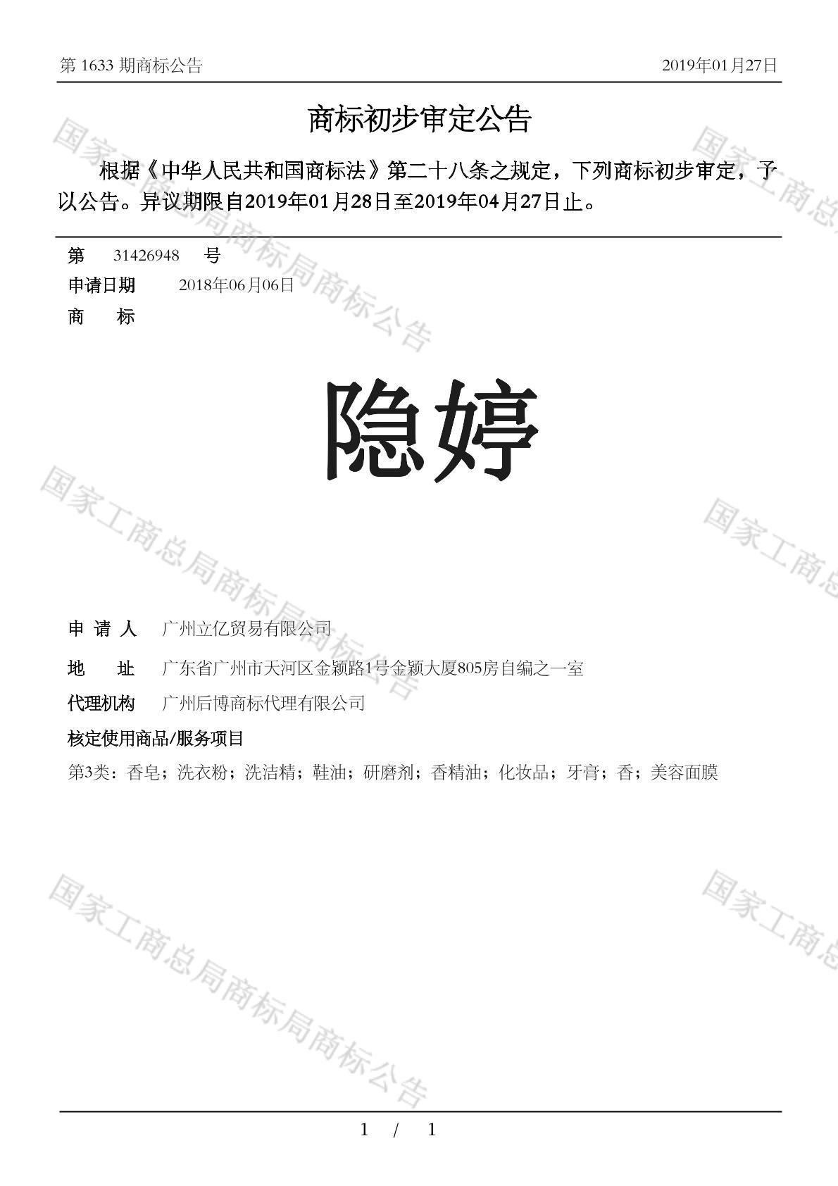 有效期限:2029-04-27 组合类型:中文注册号:31426948