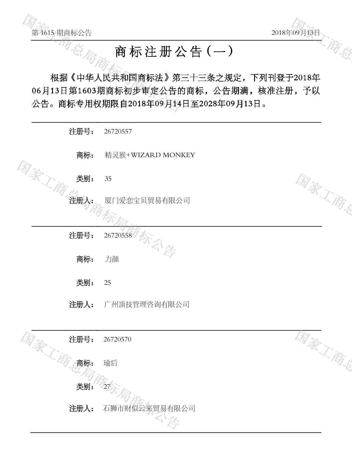 有效期限:2028-09-13 组合类型:中文注册号:26720570