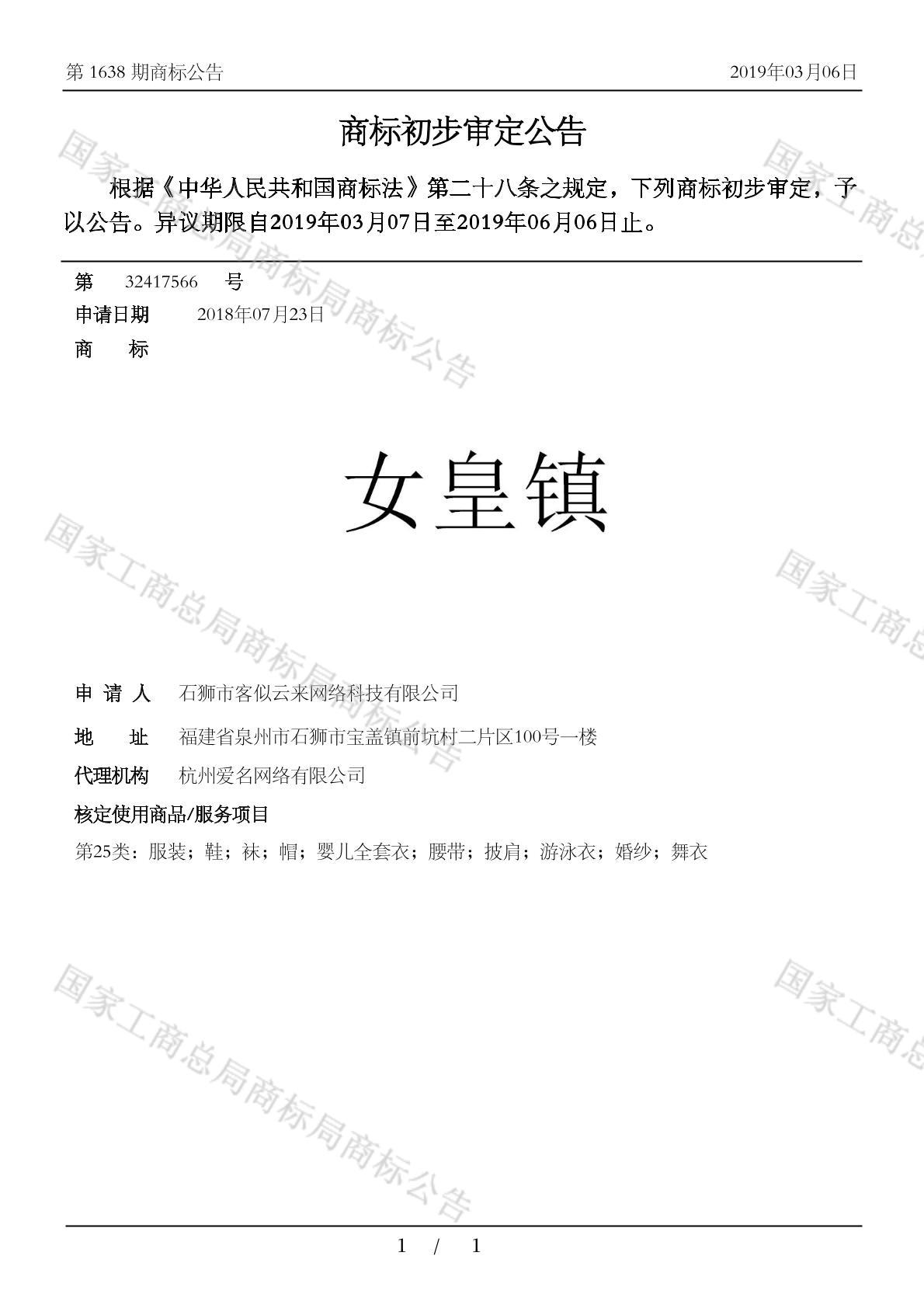您当前位置:首页商标转让25类商标女皇镇
