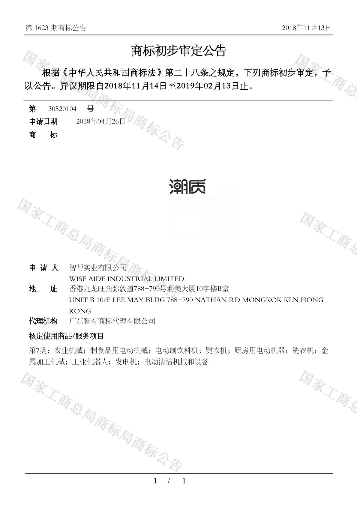 有效期限:2029-02-13 组合类型:中文注册号:30520104