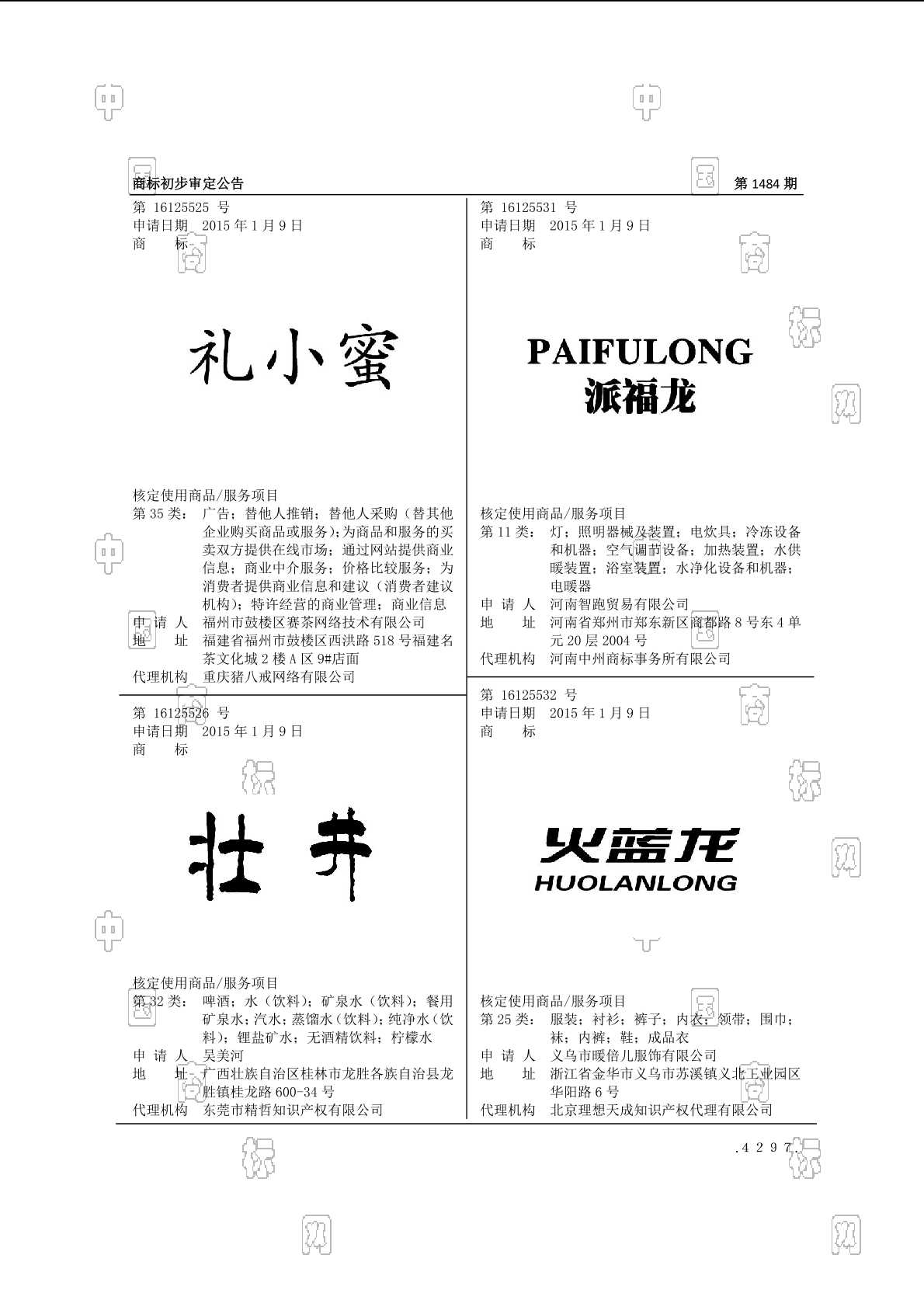 初审公告期号:1484