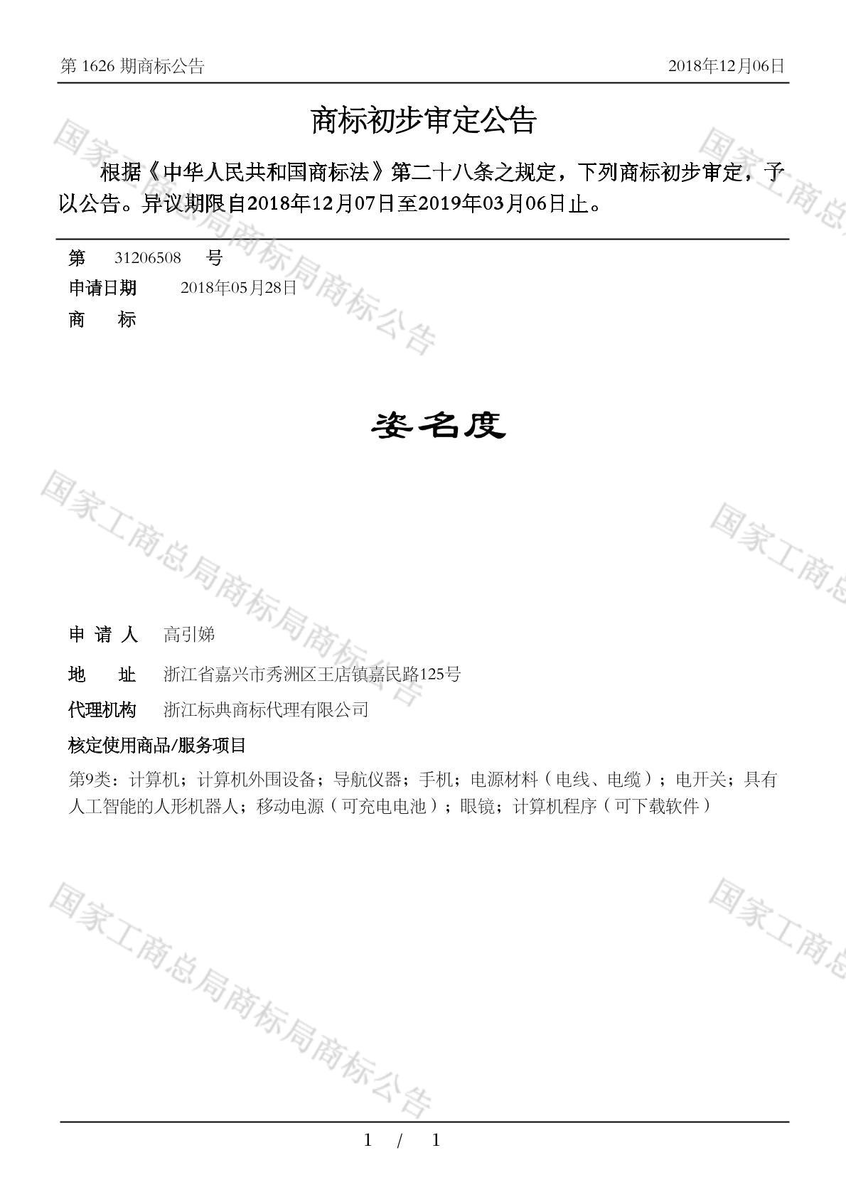 有效期限:2029-03-06 组合类型:中文注册号:31206508