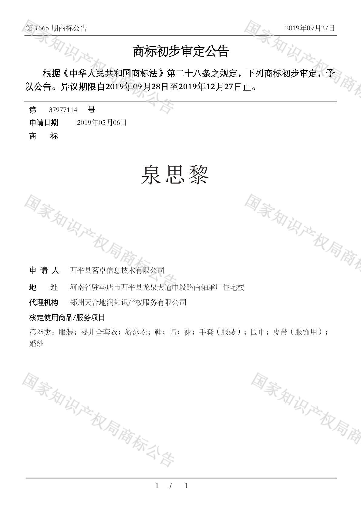您当前位置:首页商标转让25类商标泉思黎