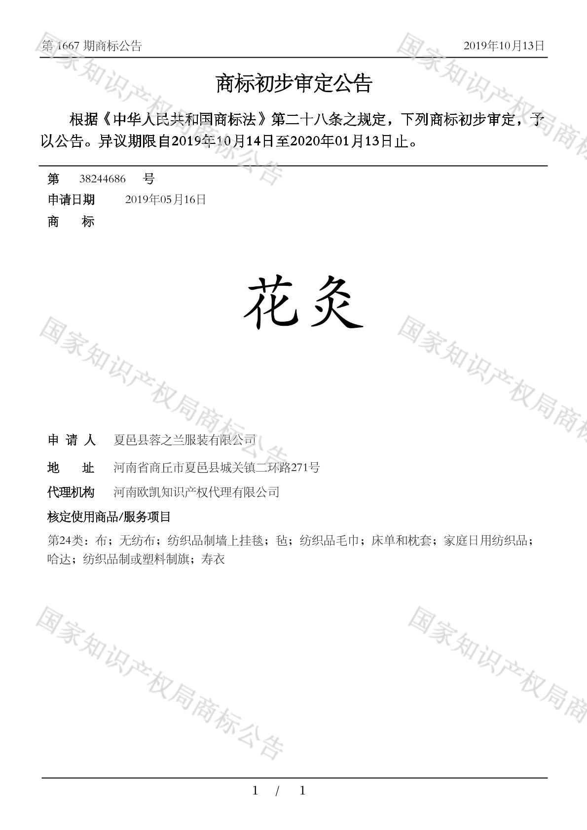 有效期限:2030-01-13 组合类型:中文注册号:38244686