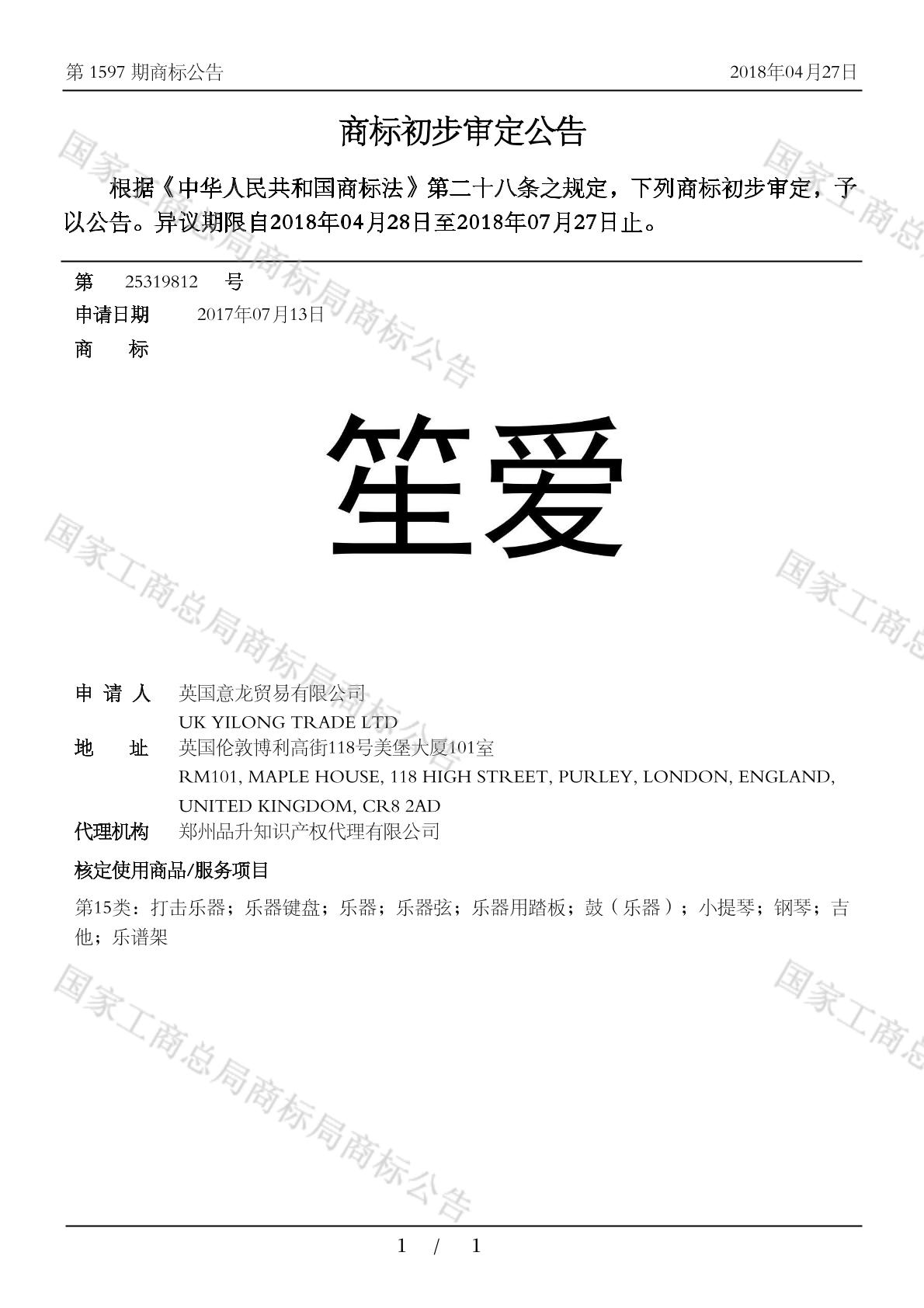 有效期限:2028-07-27 组合类型:中文注册号:25319812