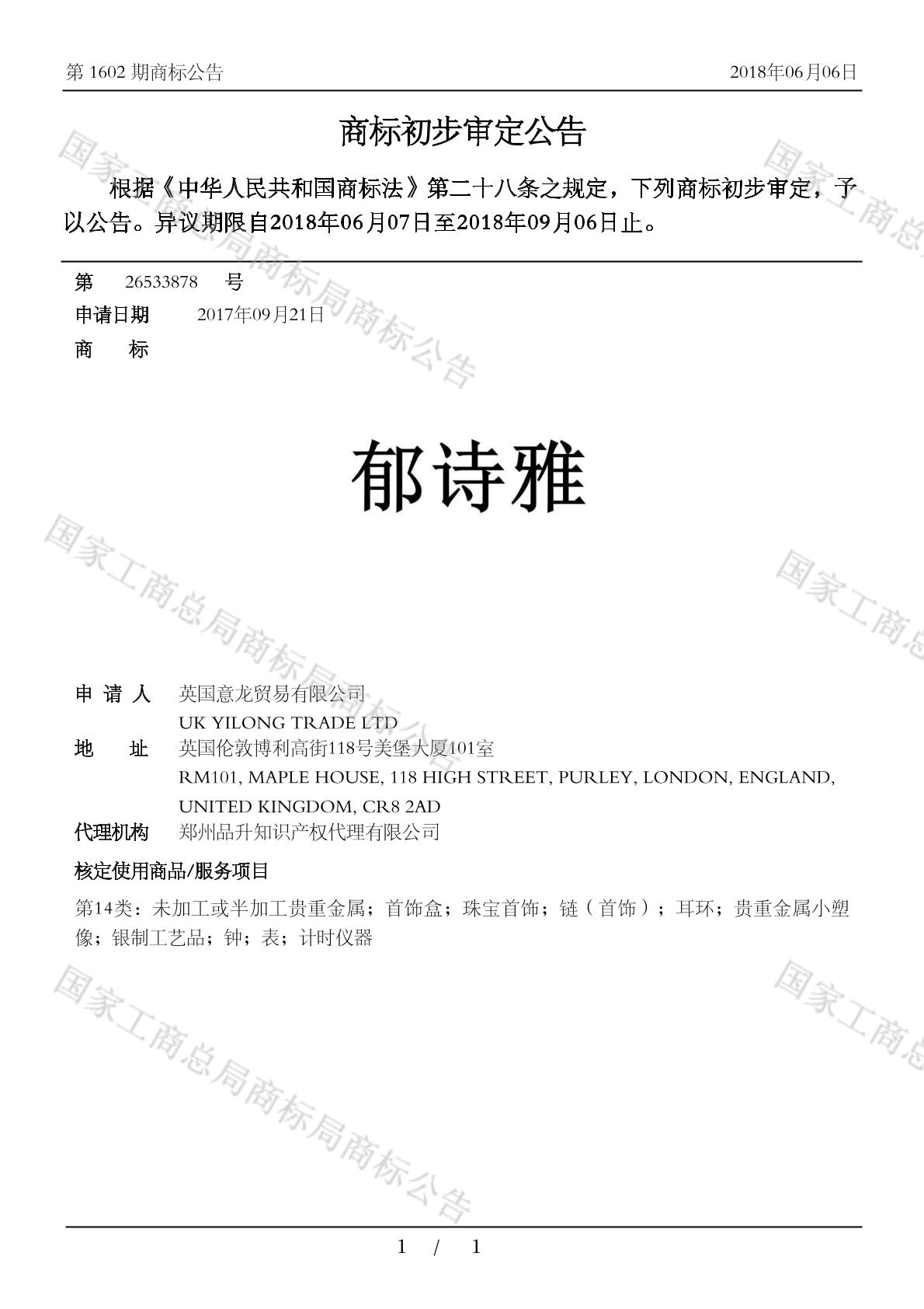 您当前位置:首页商标转让14类商标郁诗雅