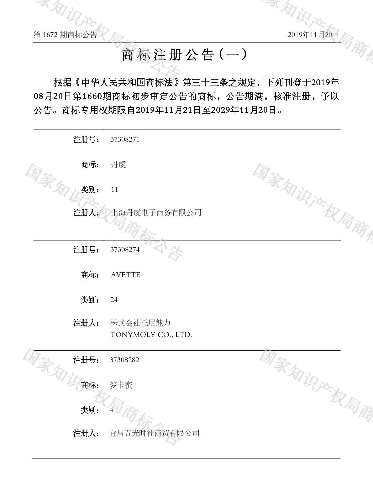 有效期限:2029-11-20 组合类型:中文注册号:37308282