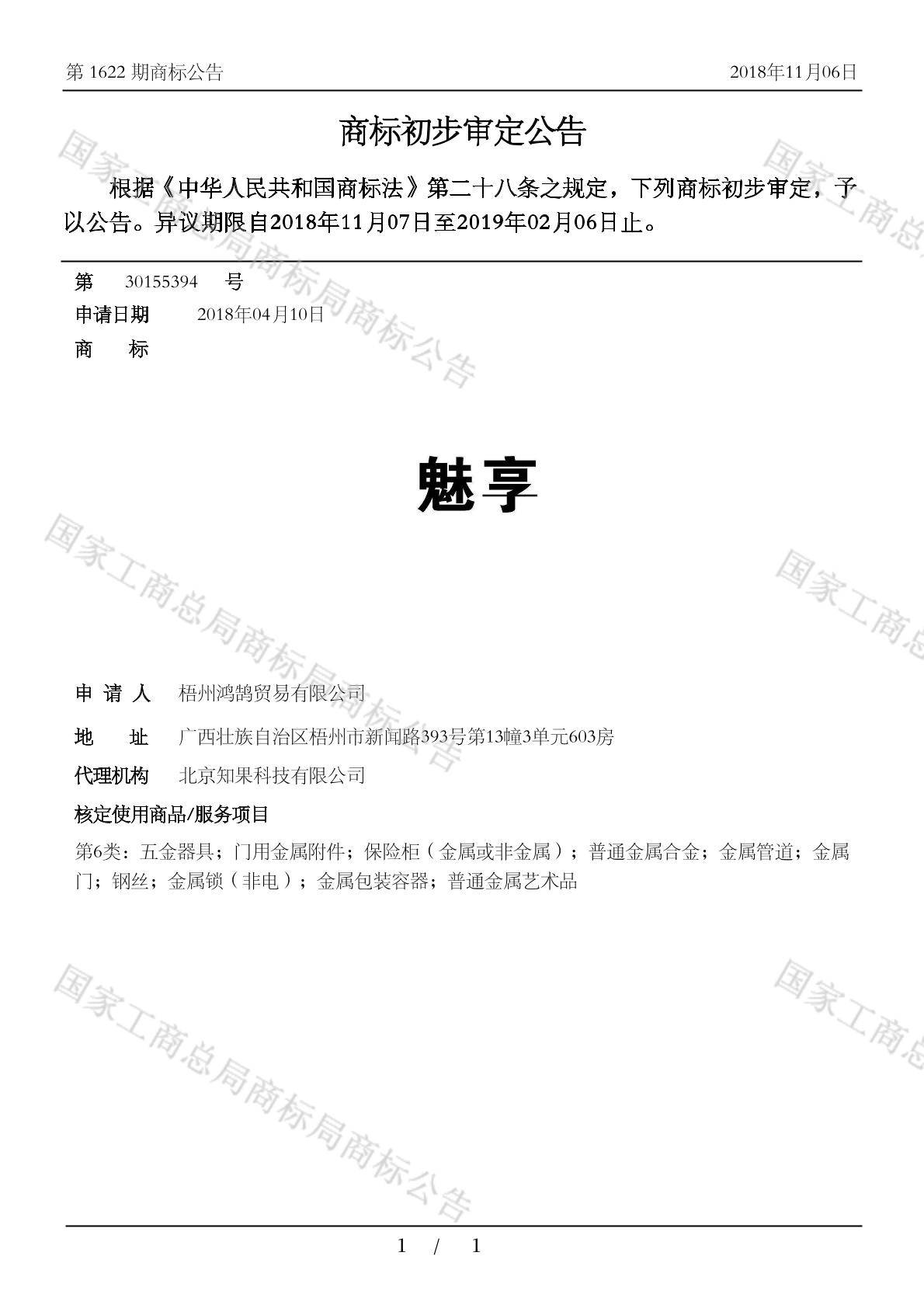 初审公告日期:2018-11-06