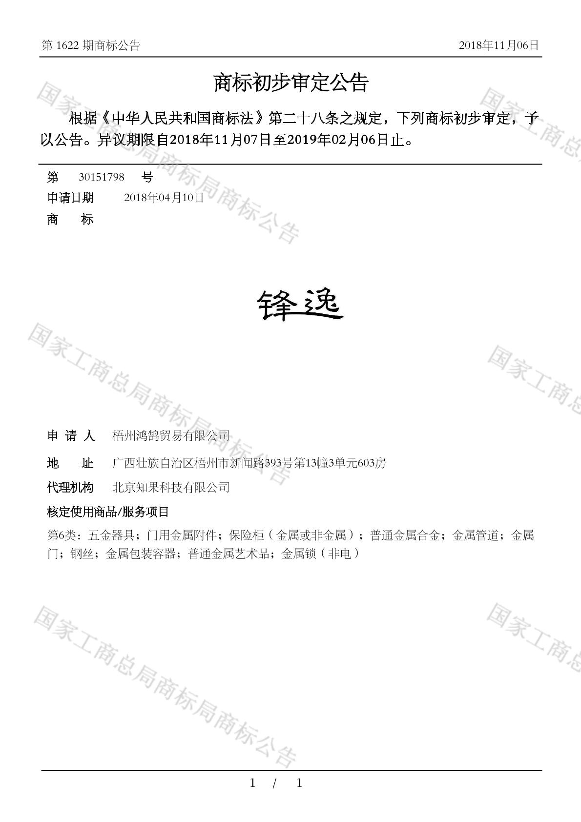 初审公告日期:2018-11-06