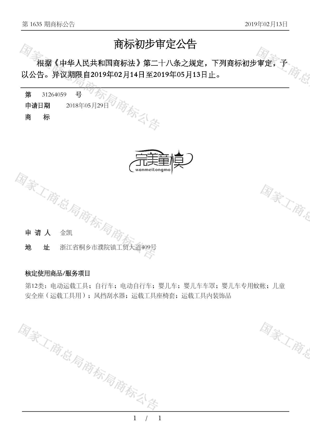 有效期限:2029-05-13 组合类型:中文注册号:31264059