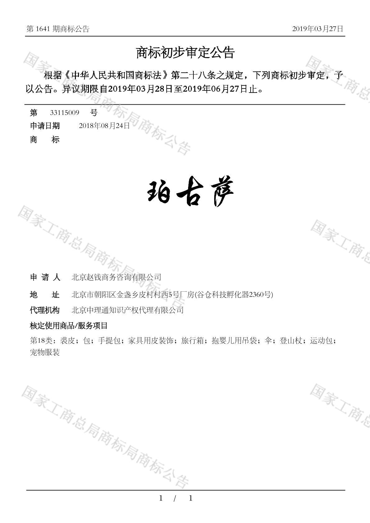 有效期限:2029-06-27 组合类型:中文注册号:33115009