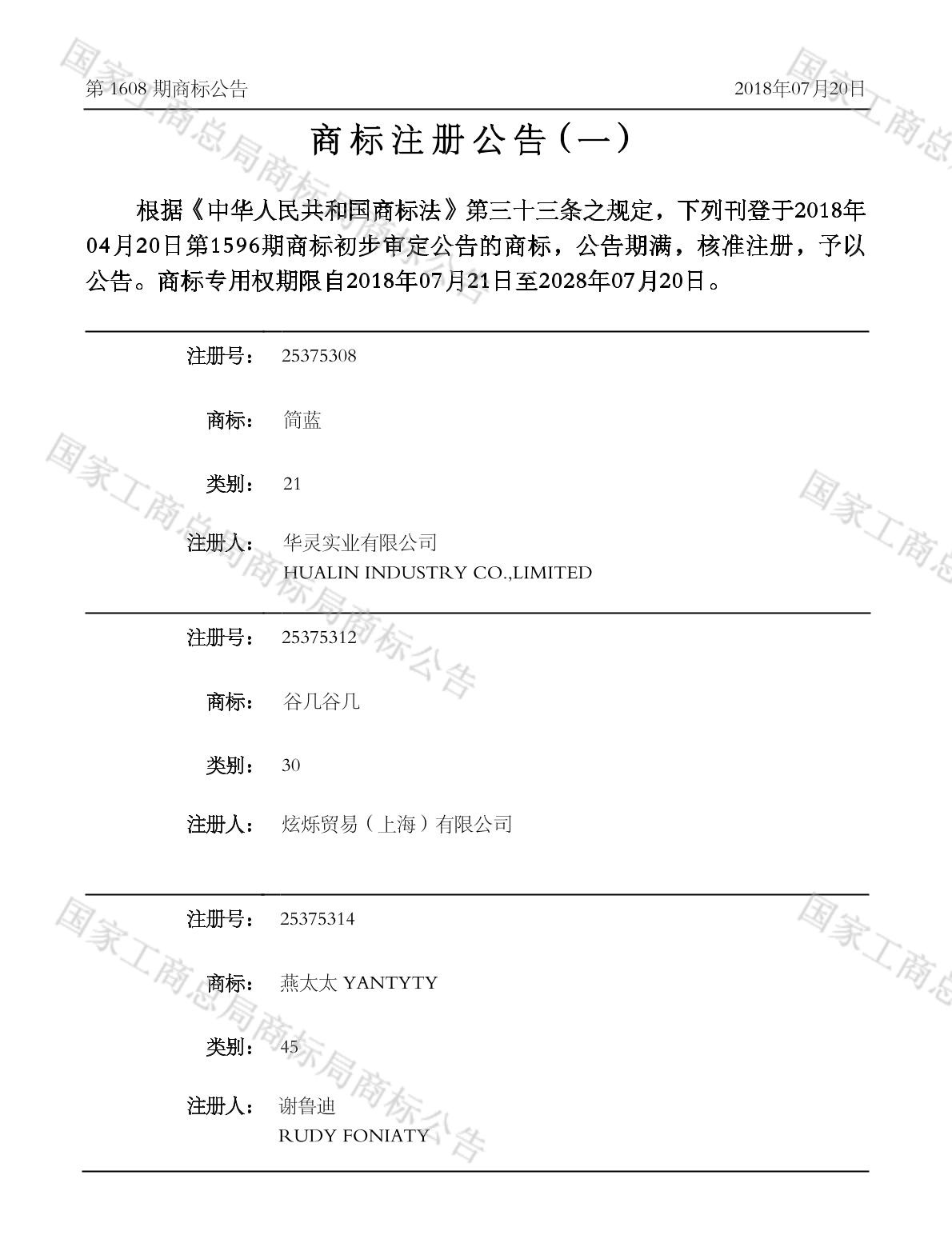 有效期限:2028-07-20 组合类型:中文注册号:25375308