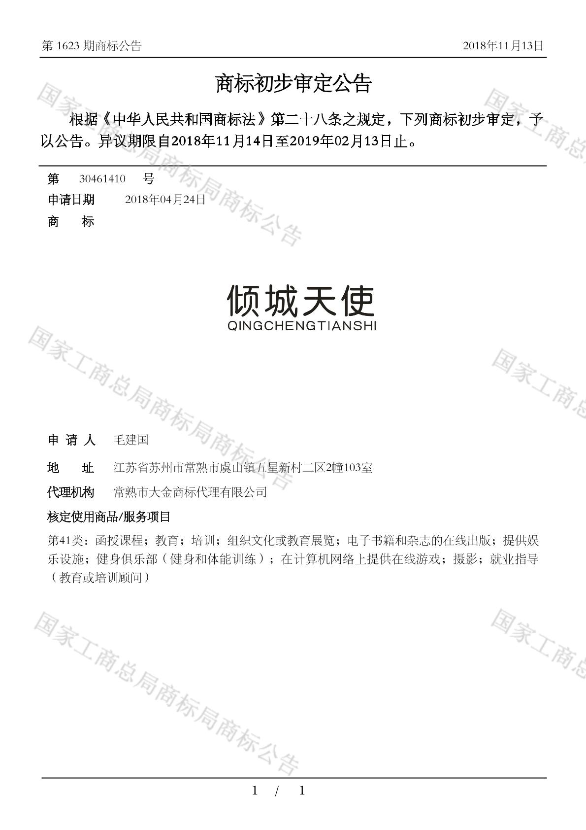 初审公告日期:2018-11-13