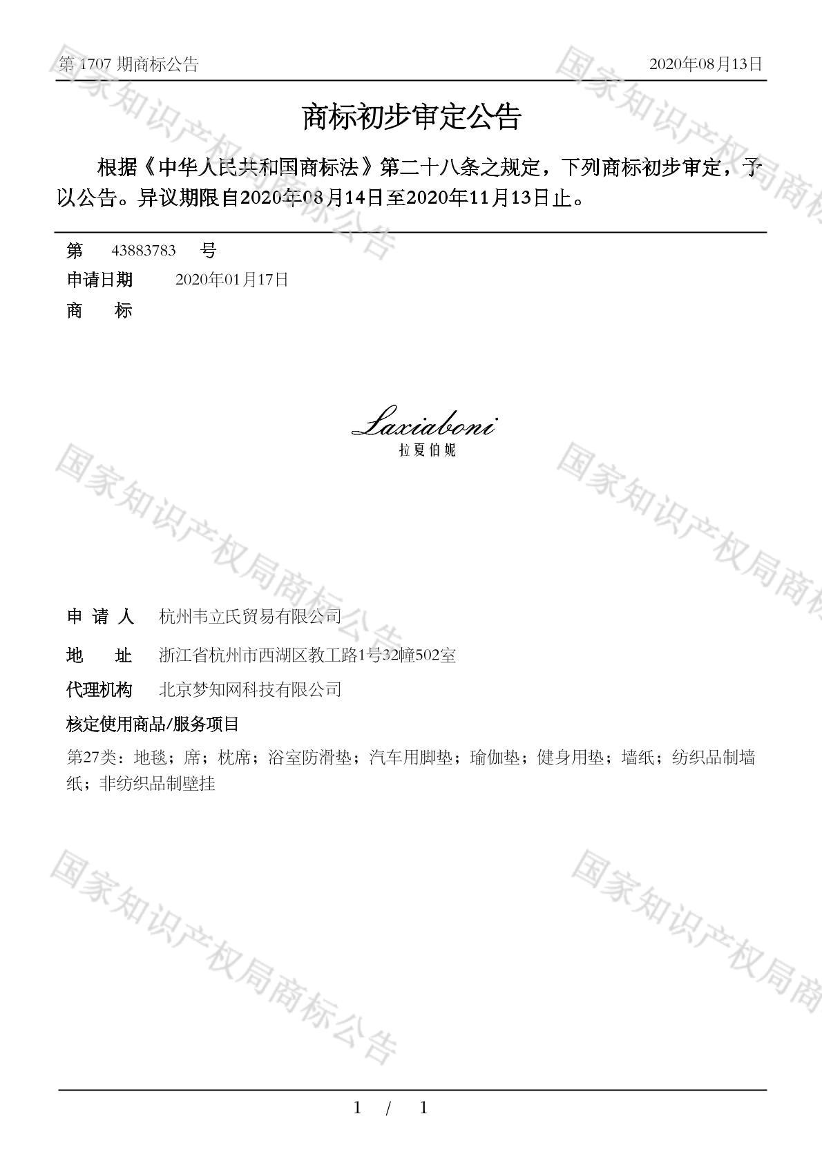 有效期限: 组合类型:中文注册号:43883783