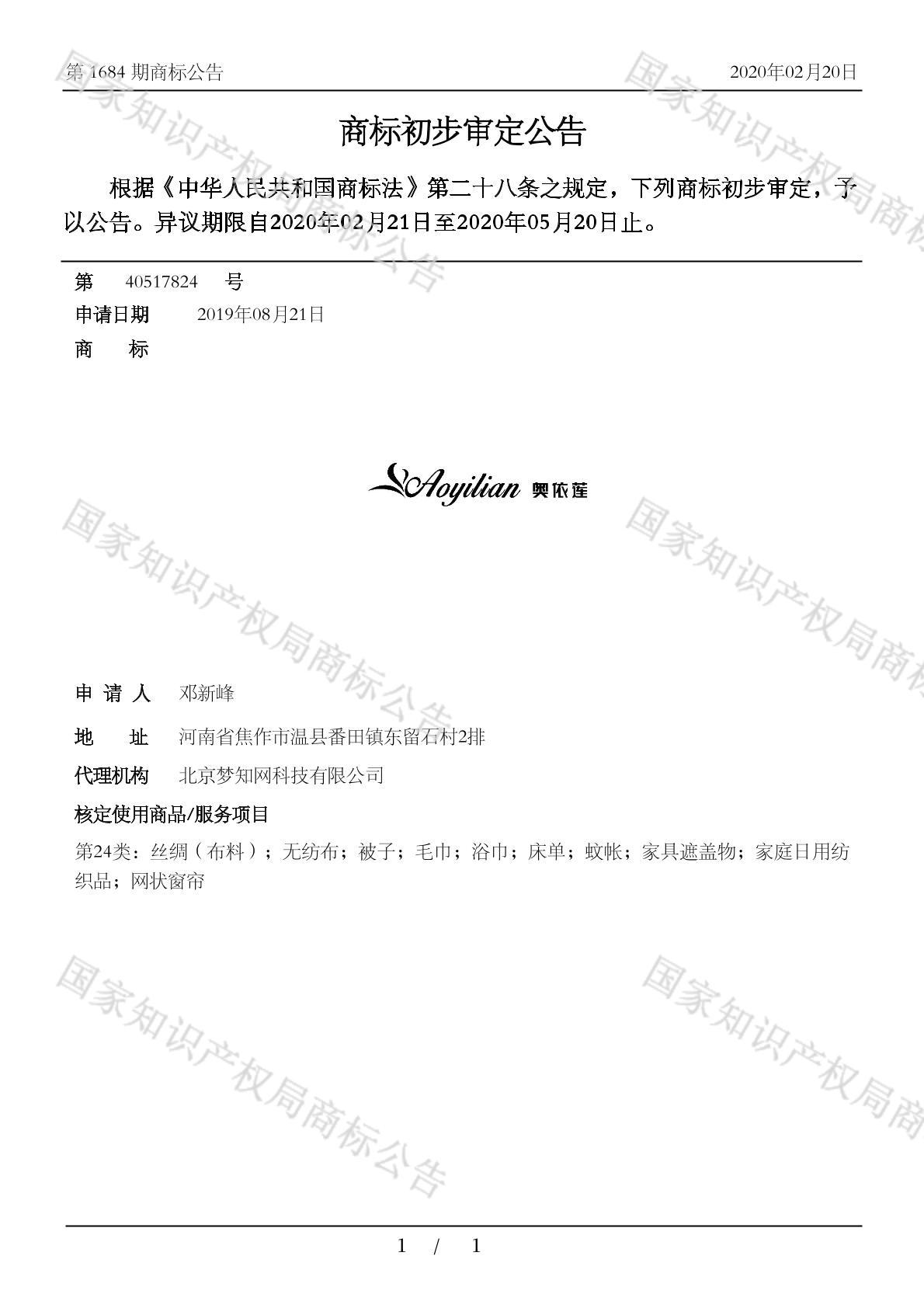 有效期限:2030-05-20 组合类型:中文注册号:40517824