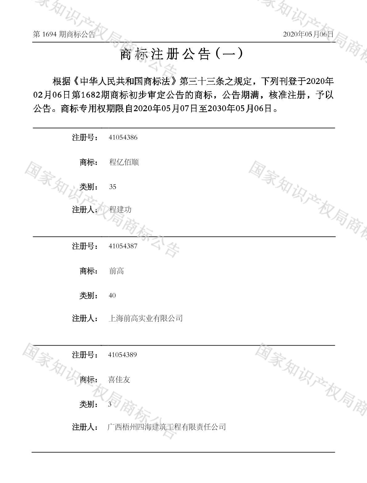 注册公告期号:1694