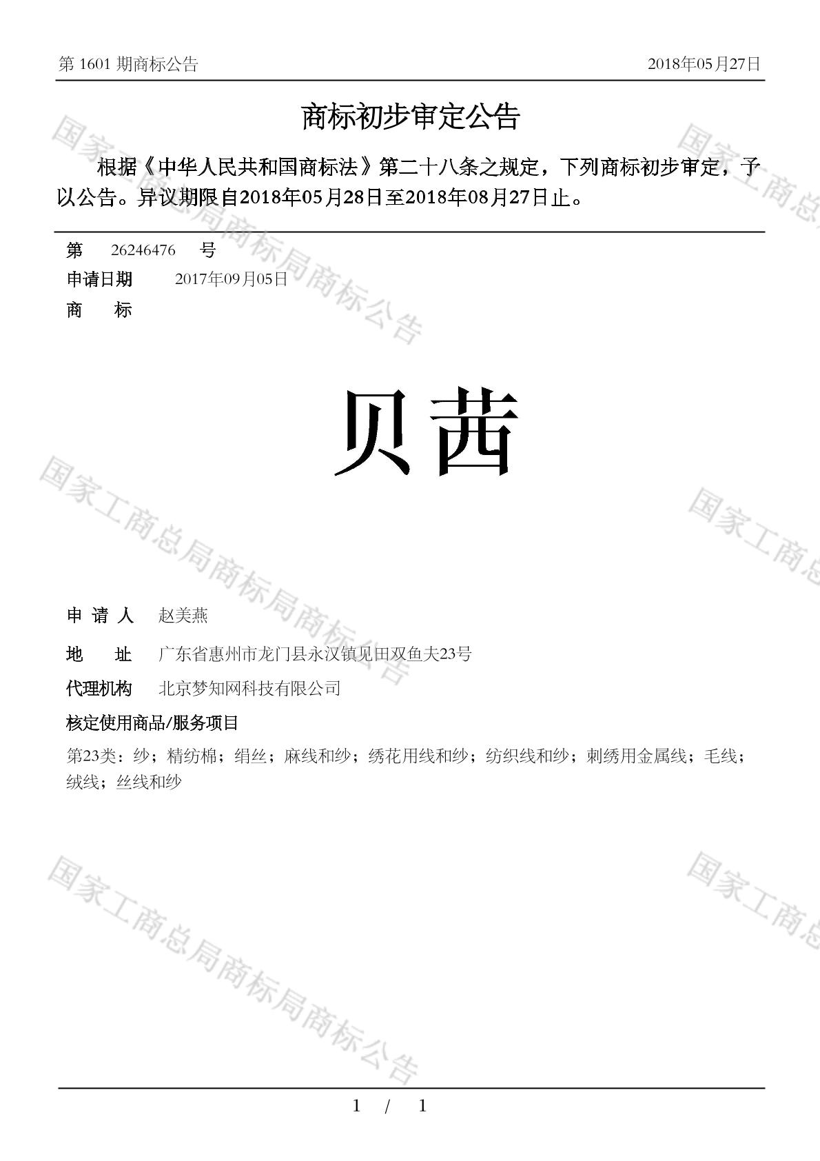 有效期限:2028-08-27 组合类型:中文注册号:26246476