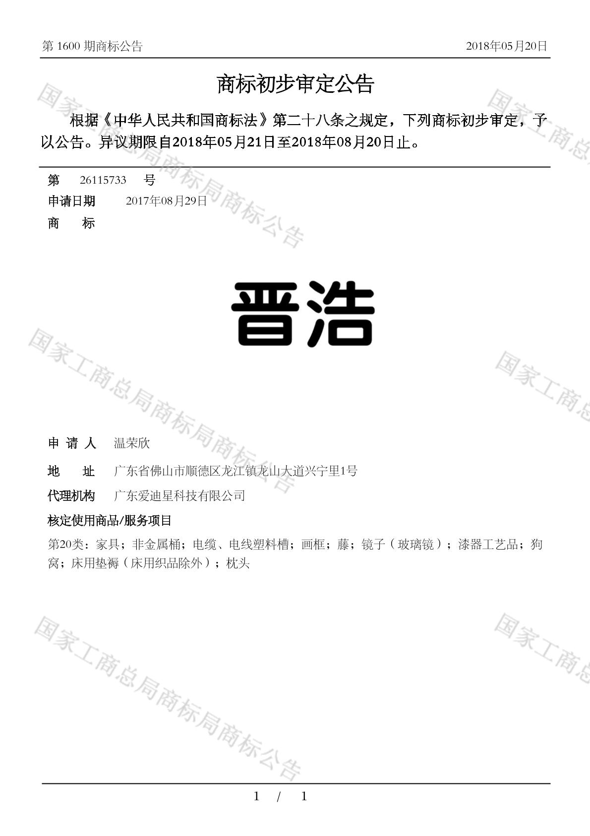 初审公告日期:2018-05-20