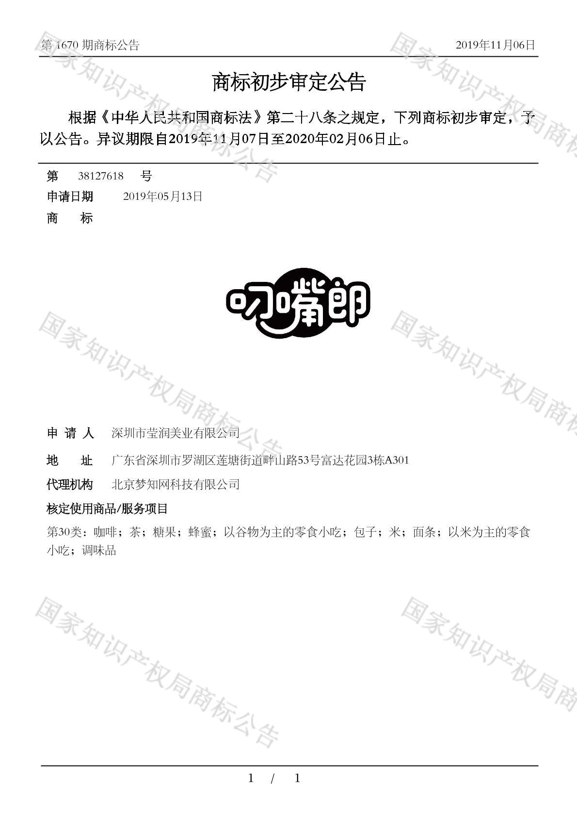 有效期限:2030-02-06 组合类型:中文注册号:38127618
