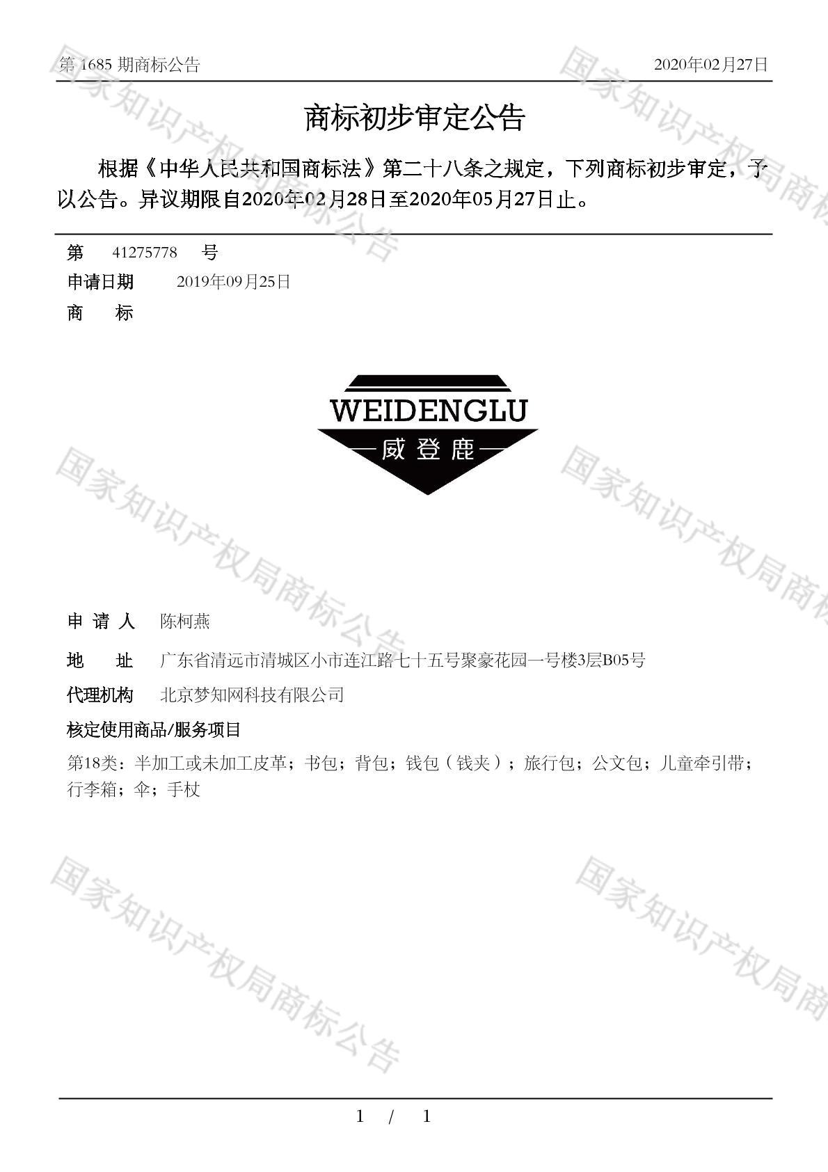 有效期限:2030-05-27 组合类型:中文注册号:41275778