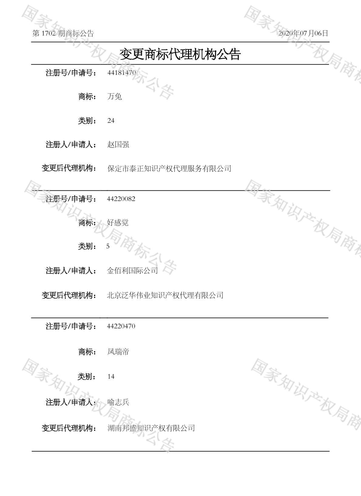 有效期限:2030-10-27 组合类型:中文注册号:44220470