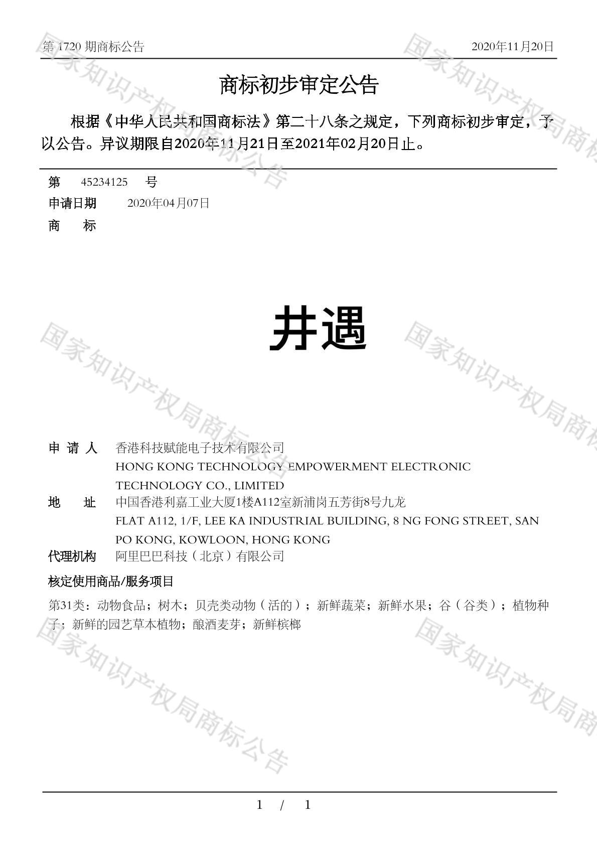 初审公告期号:1720
