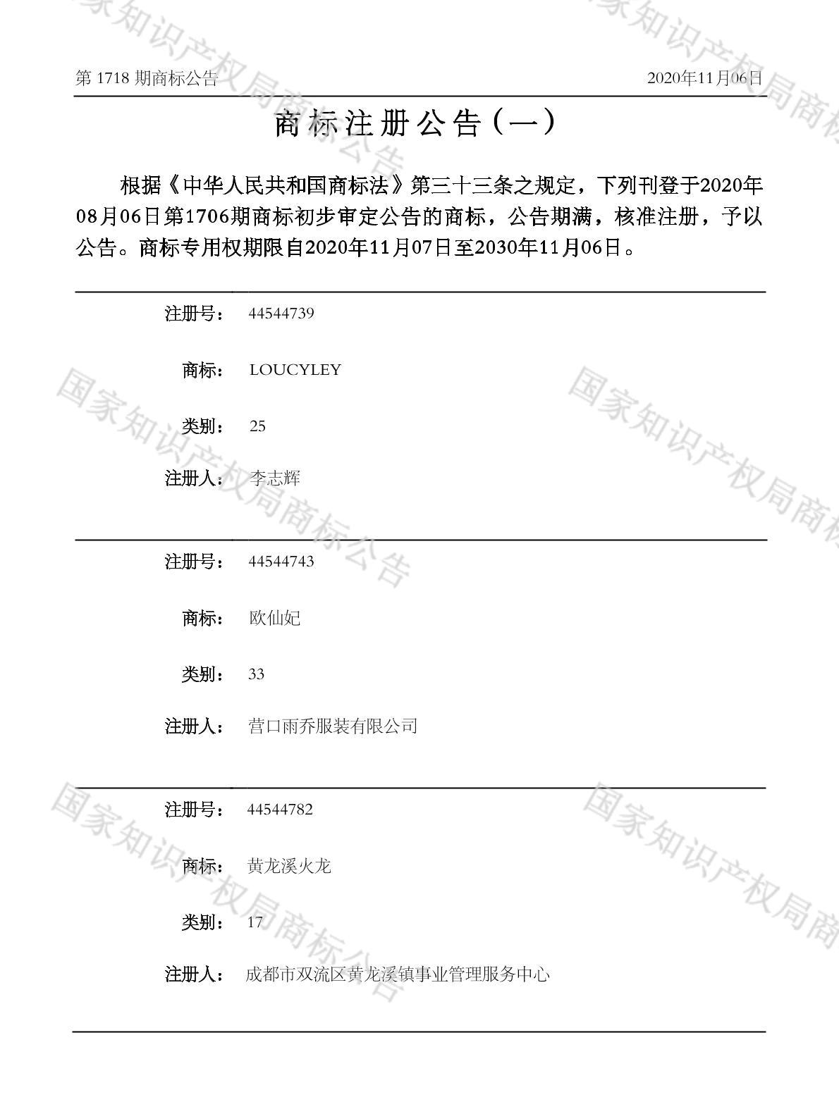 有效期限:2030-11-06 组合类型:中文注册号:44545841