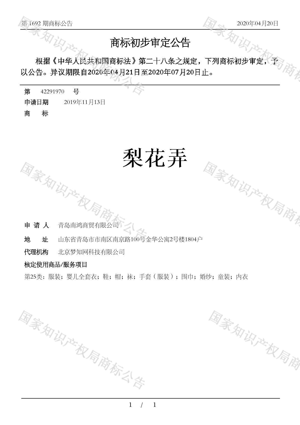 有效期限:2030-07-20 组合类型:中文注册号:42291970