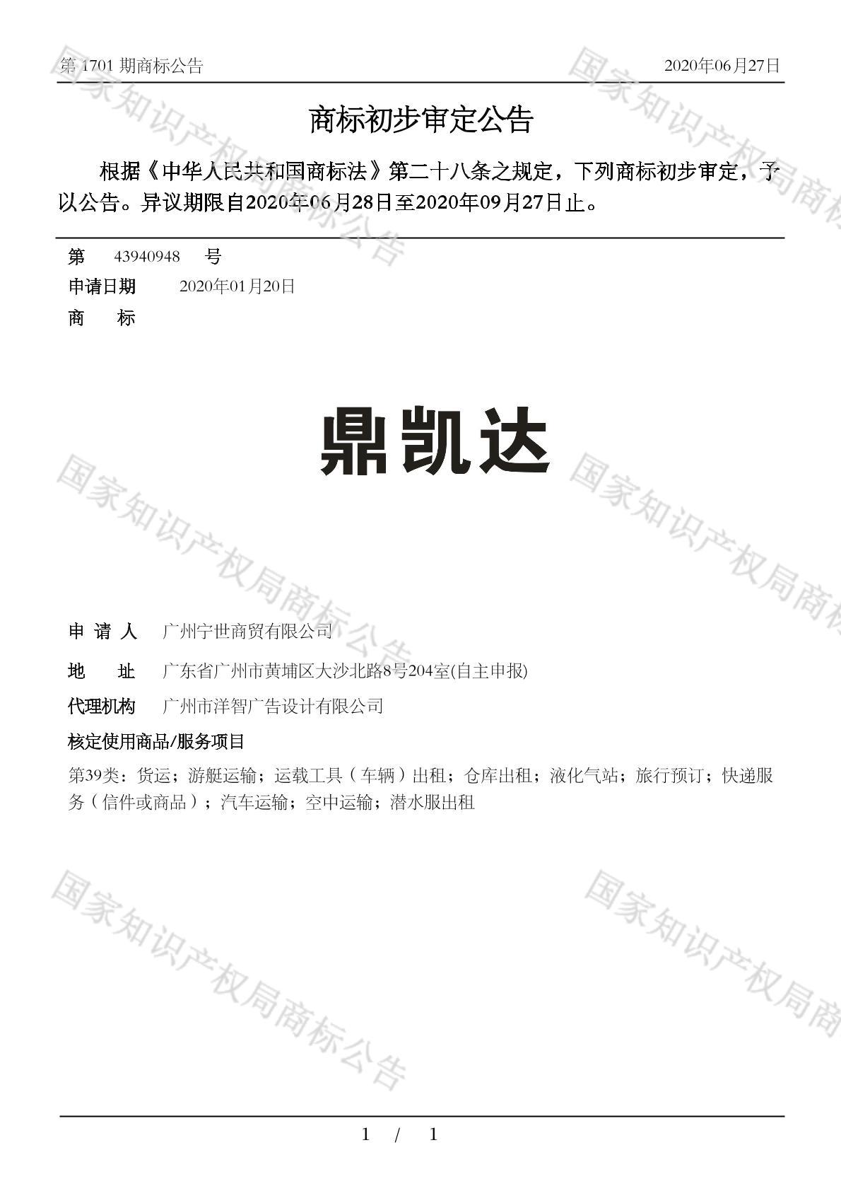 有效期限:2030-09-27 组合类型:中文注册号:43940948