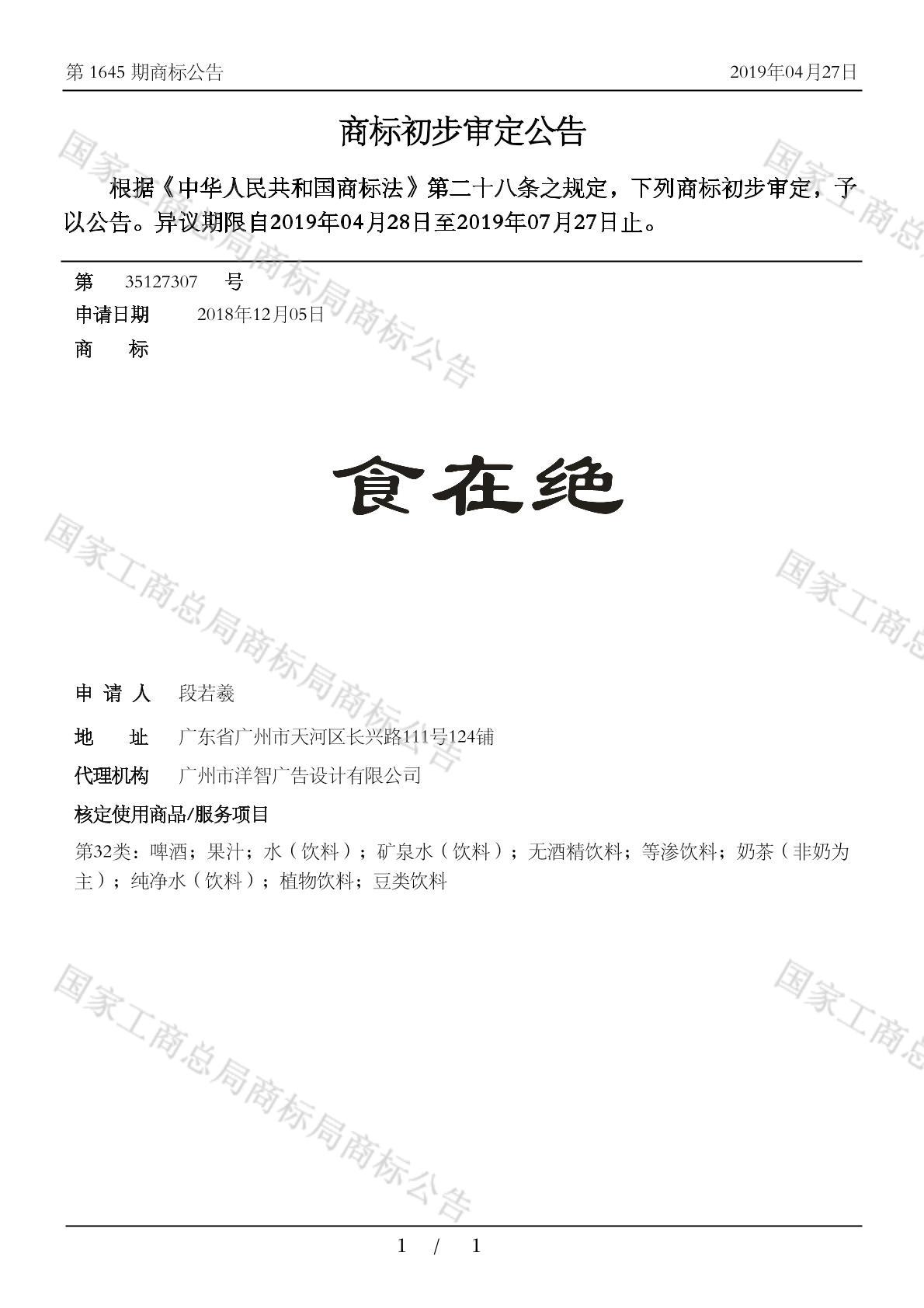 有效期限:2029-07-27 组合类型:中文注册号:35127307