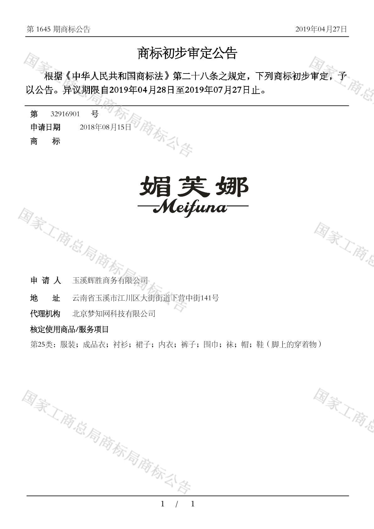 有效期限:2029-07-27 组合类型:中文注册号:32916901