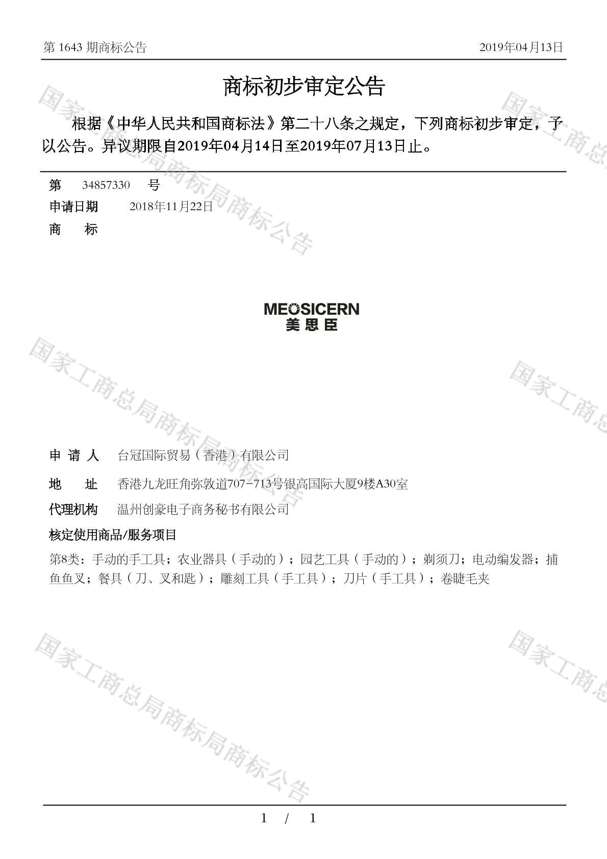 您当前位置:首页商标转让8类商标美思臣 MEOSICERN