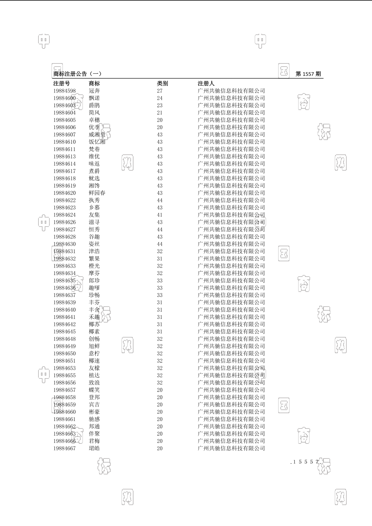 注册公告期号:1557