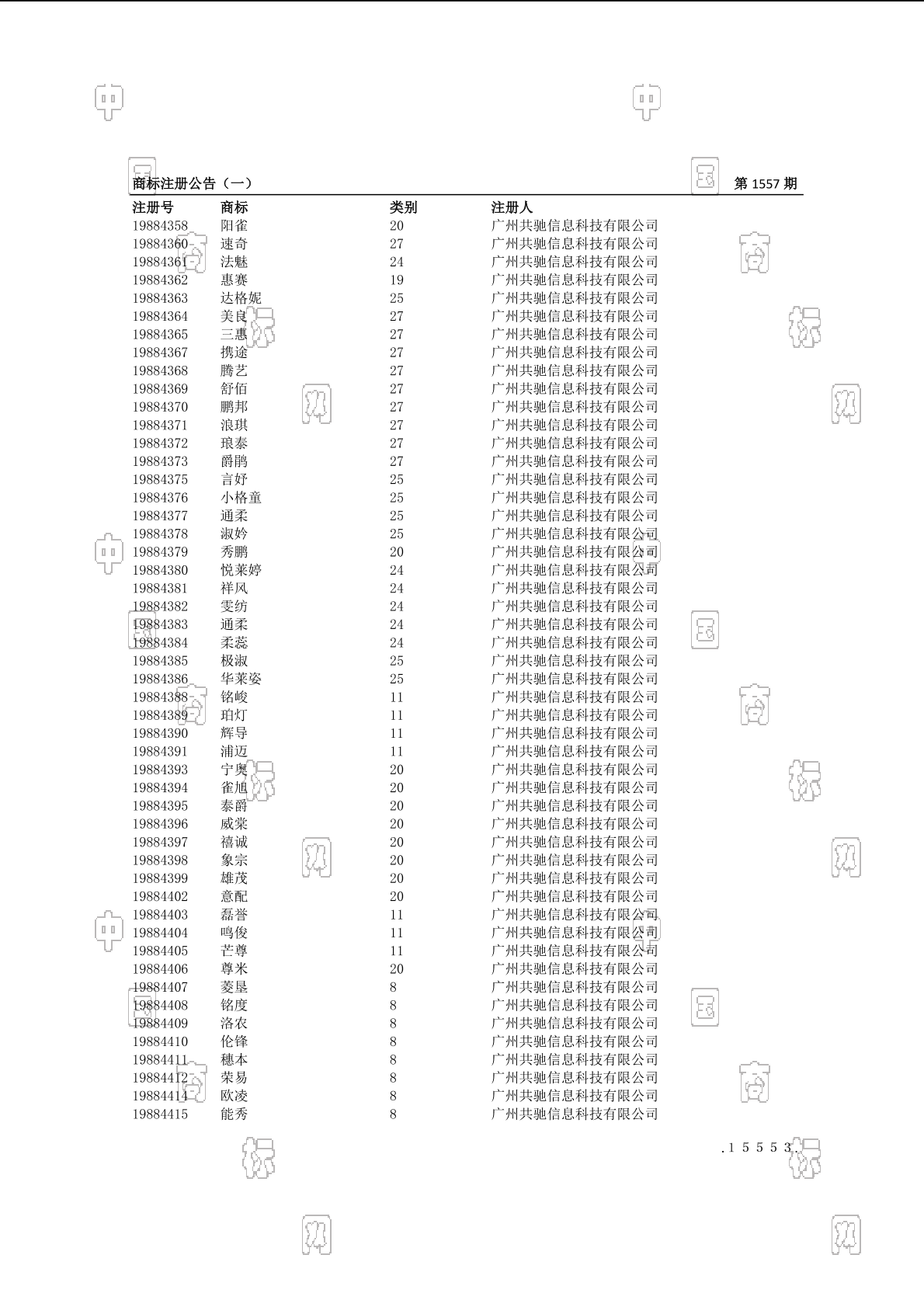 注册公告期号:1557