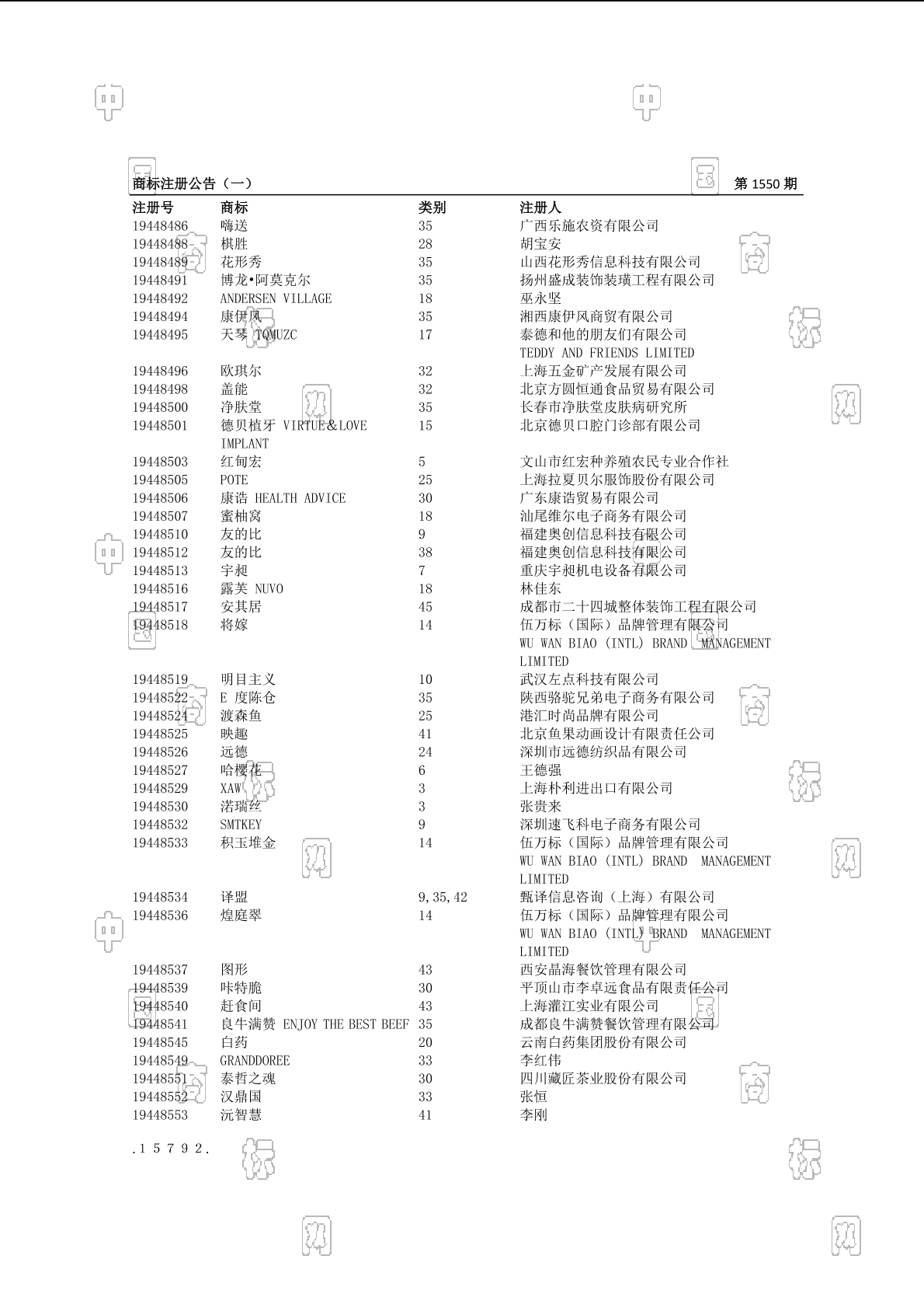 注册公告期号:1550
