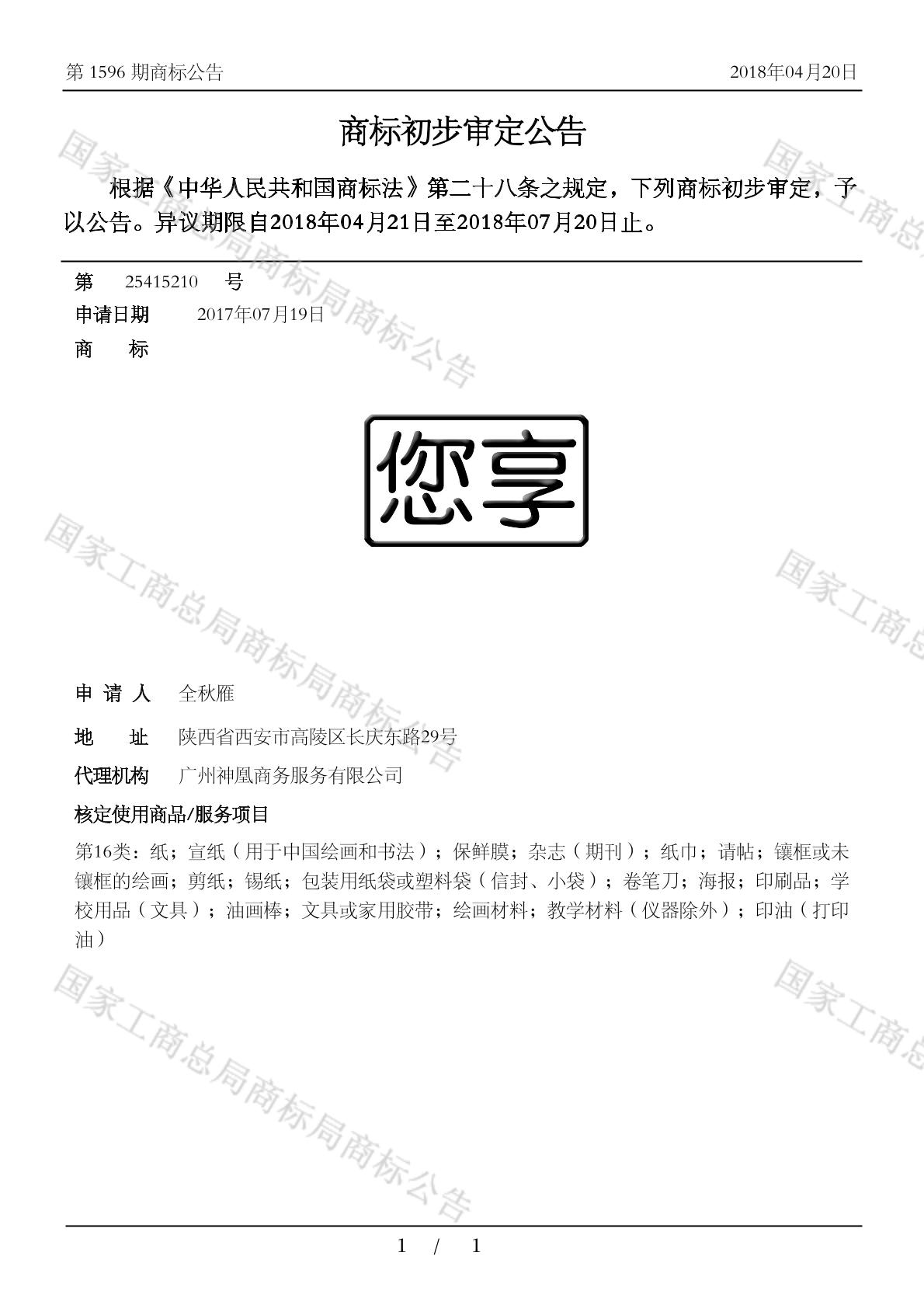 有效期限:2028-07-20 组合类型:中文注册号:25415210