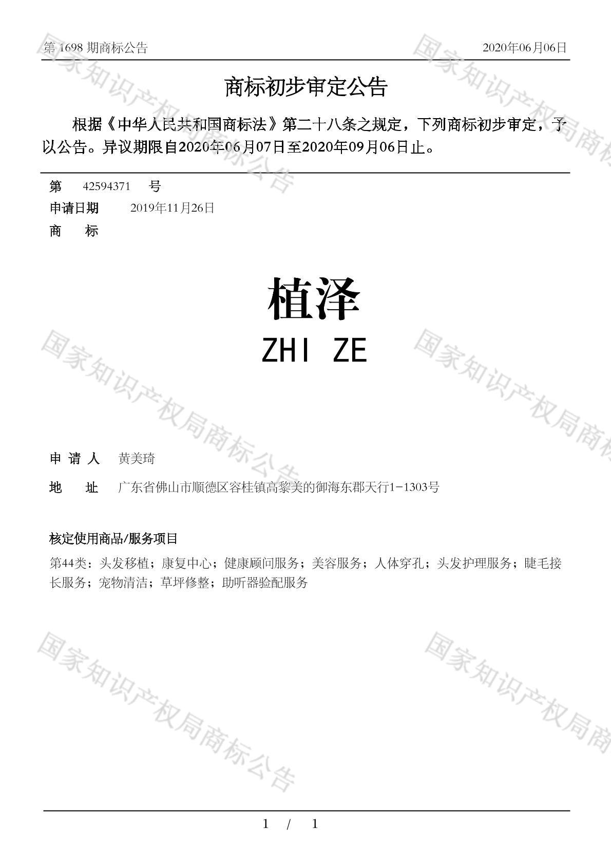您当前位置:首页商标转让44类商标植泽